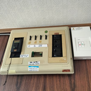 現場調査にお伺いして既設の分電盤を確認しましたところ、30年以上前の漏電ブレーカーの分電盤が設置してありましたので新しい分電盤へ取替工事をご提案しました。