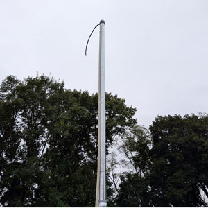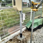 引込ポールは1m 埋設を行い、埋設部をコンクリートで寝巻きをしてしっかり固定をしていきます。